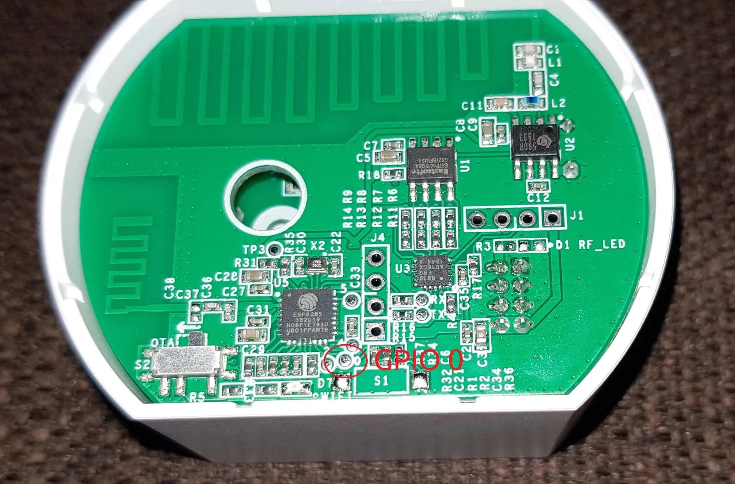 Photo of GPIO 0, images by [klotzma](https://github.com/arendst/Tasmota/issues/7598#issuecomment-578433417).